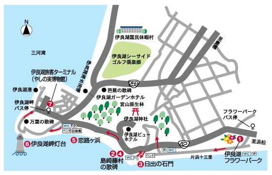 ◇コースのあらまし 一年中温暖な気候に恵まれた渥美半島最先端の伊良湖岬を目指します。 冬の景色 とは思えない青い空と海、白砂の海岸線が印象的。 片浜十三里、日出の石門、恋路ヶ浜、伊良湖岬灯台等のみどころもいっぱいつまったウォーキングが楽しめます。 ◇アドバイス 伊良湖フラワーパークまたは伊良湖岬旅客ターミナルのどちらからでもスタートできます。 今回のコースの場合、マイカーの方は伊良湖岬旅客ターミナルでバスに乗り、伊良湖フラワーパークまで戻ることができます。 また伊良湖へのアクセス方法として、知多半島の師崎、河和からフェリーで来ることもできます。 ハイキングについでにクルージングを楽しんではいかがですか。 | |||