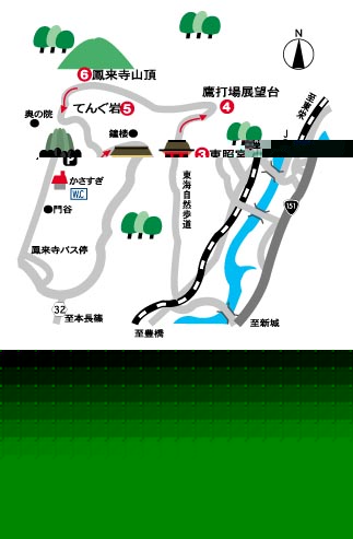 ![]() ![]() 1.登山口 --(40分・1835歩)→ 2. 鳳来寺本堂 -→ 3.東照宮 --(40分・2009歩)→ 4.鷹打場展望台 --(40分・1438歩)→ 5.てんぐ岩 --(20分・948歩)→ 6.鳳来寺山頂 --(30分・1903歩)→ 7.鳳来寺 --(30分・1903歩)→ 往路戻る -→ 8.登山口 ■標高差 695m |
