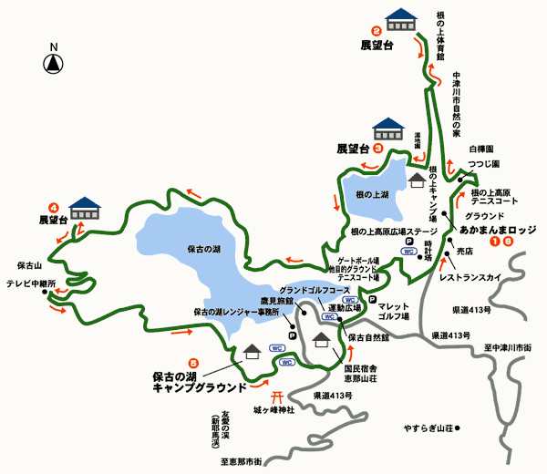 ◇コースのあらまし 恵那山高原国民休養地にある「根の上湖」、「保古の湖」恵那市と中津川市境にある保古山・保古の湖を中心とした標高850m〜969mの起伏に富んだ岐阜県唯一の国民休養地。 珍しい植物観察ができる湿地園、穏やかな湖、高原の爽やかな空気、白樺の森などがあり、ヒーリング効果も期待できます。 お散歩感覚で楽しんでください。 ◇アドバイス 全体的にフラットなコースになっていますが、テレビ中継所からの下りは急勾配で木々の根が歩行を妨げるほどむき出しになっている所も多少あります。 ここはしっかりしたシューズを履いていく方がベター。気軽なウォーキングだけを楽しみたい方は、根の上湖付近をぐるっと回るコースを選択するとよいでしょう。 |