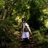 滝沿いの道を歩く |
